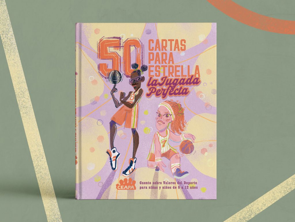 Ilustraciones y Diseño Gráfico para “50 cartas para Estrella, La Jugada Perfecta”. Cuento para niñ@s desde 8 años para CEAPA ( Confedereción Española de Asociaciones de Padres y Madres) sobre los clubs escolares de baloncesto. Escrito por Clara Redondo Sastre y patrocinado por el Ministerio de Educación y Deporte.
