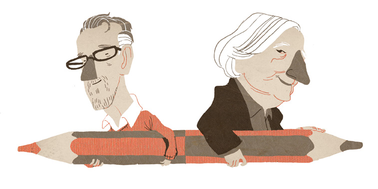 Jacobo Pérez Enciso ( Diseñador que ilustra) y Ángel de Pedro ( Ilustrador que diseña), se reúnen en una mesa redonda para compartir diferencias y similitudes entre sus profesiones.